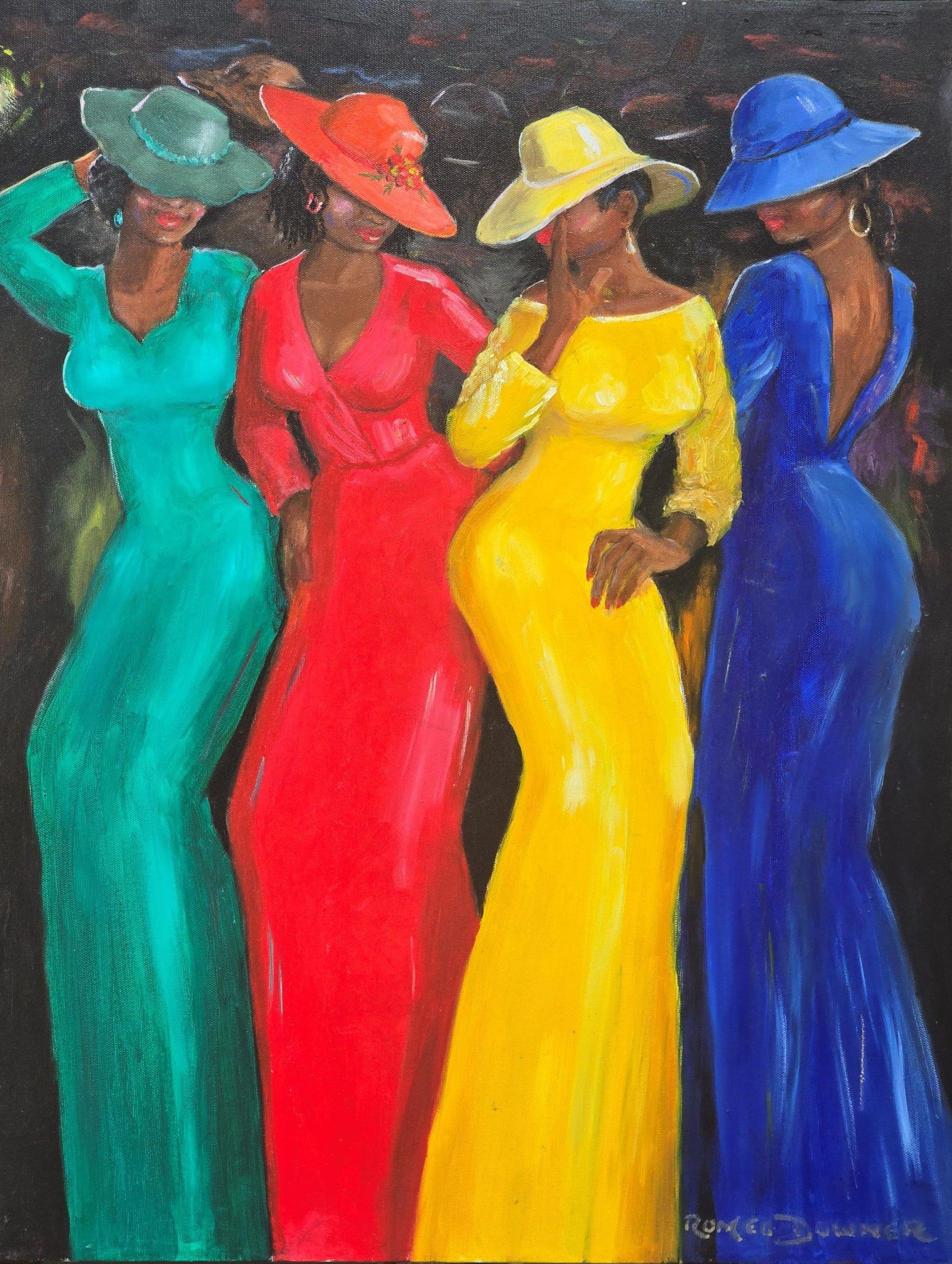 A vibrant and dynamic artwork by Romeo Downer, Soca Dancers captures the energy and rhythm of Caribbean soca music through bold colors and expressive movement.